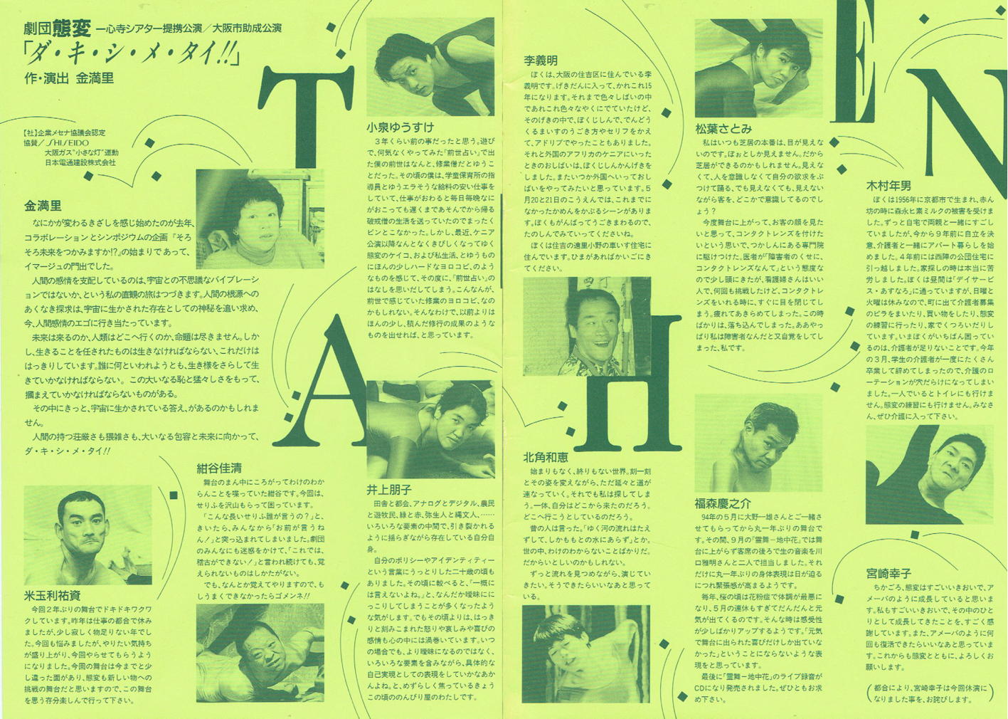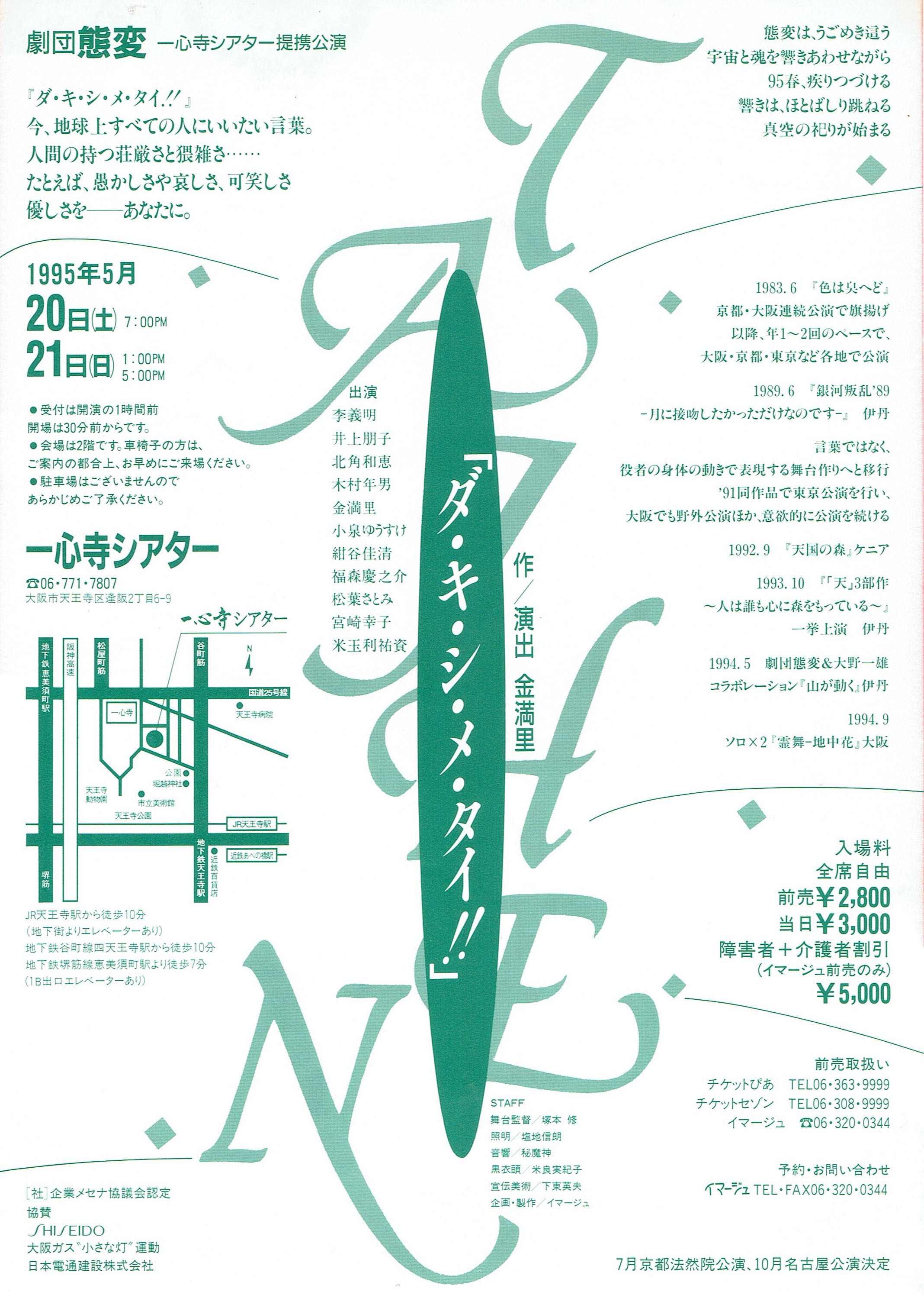 この5月の一心寺シアターでの態変公演『ダ・キ・シ・メ・タイ!!』 は、 そんな去年1年の予兆の中で生まれました。このタイトルはすでに去年の12月に、私の頭から飛び出し世に出ていたのです。